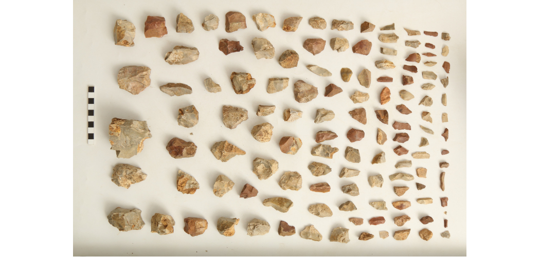 A lapszámban bemutatott, frissen feltárt pattintott kövek a középső neolit időszakából, mely az idei címlap inspirációjául szolgált (Fotó: Helesfai Márk)