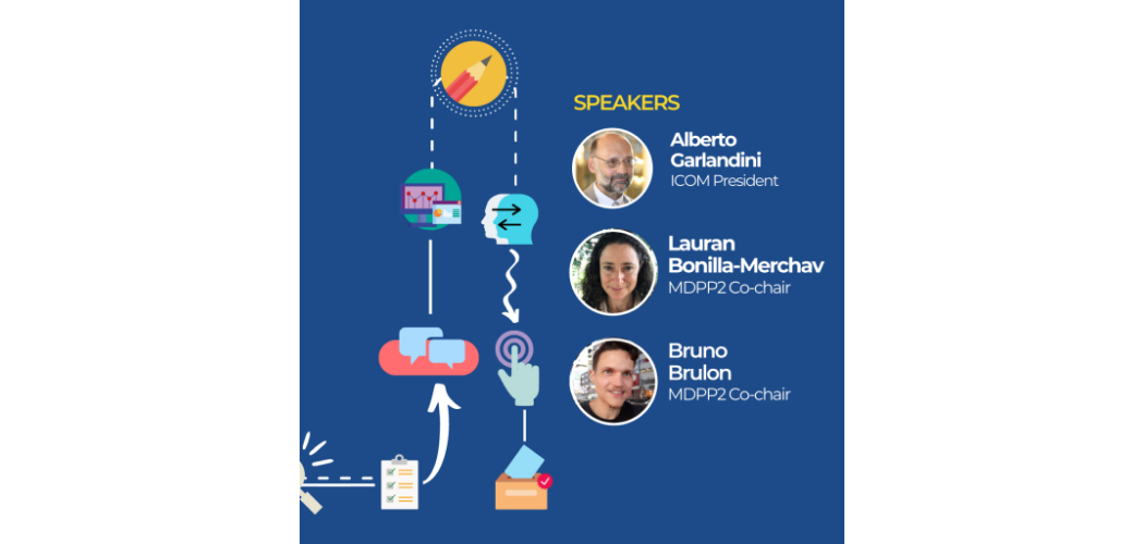 A webináriumot a két újonnan kinevezett társelnök, Lauran Bonilla-Merchav és Bruno Brulon, valamint Alberto Garlandini, az ICOM elnöke vezeti, és ismerteti a módszertan különböző szakaszait, hogy ösztönözze a tagokat és a bizottságokat, hogy aktívan vegyenek részt a konferencia folyamatában, az új múzeumdefiníciós javaslat létrehozásában.