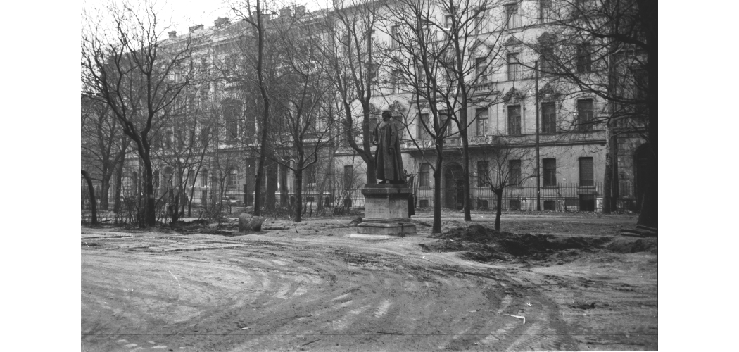 Széchényi Ferenc szobra és környezete 1956-ban (Magyar Nemzeti Múzeum, Központi Adattár)