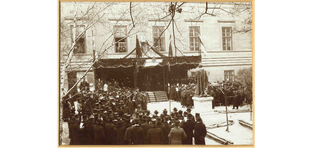 A szoboravató ünnepség a Múzeumkertben, 1902. november 26. (Weinwurm Antal felvétele, Magyar Nemzeti Múzeum, Történeti Fényképtár)