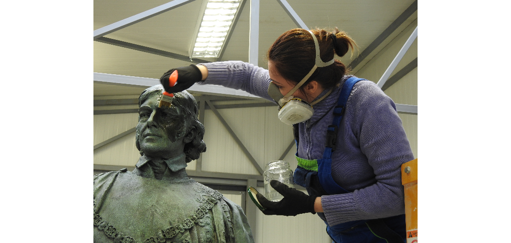 A Széchényi szobor restaurálása a Belvárosi Építő Kft. szentendrei műhelyében (Fotó: Nagy Melinda és Bakonyi Eszter)