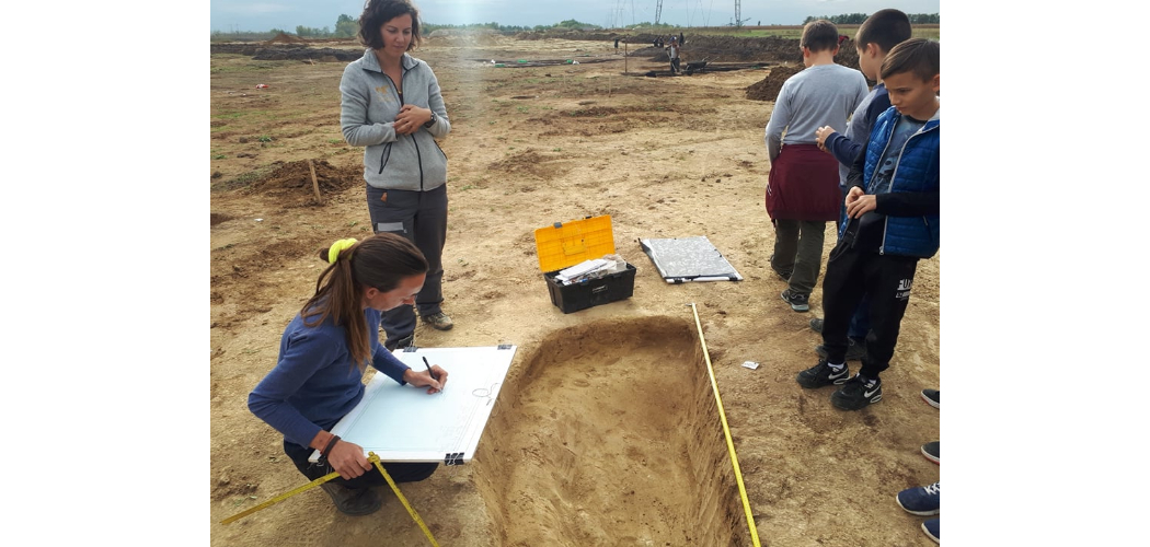 A délutáni tanszoba alól mentesült ötödik osztályos csapatba szinte belefojtja a szót a tanulmányaikból ismert kép: az alattuk 40-50 centiméterrel elterülő altalajon, a sötét beásásokban a múltunk után nyomozó régészek látványa.A történelem tantárggyal éppen csak ismerkedő diákok izgatottságukban szinte fejest ugranának egy szép lelet reményében a metszetre bontott, tanúfallal osztott gödörbe a feltárás széléről.