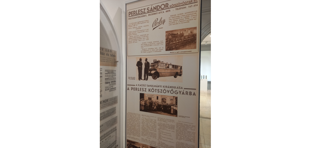 Az eddigi kutatások a zsinagóga és a közösség történetének feltárására törekedtek. A kiállításon ennek tárgyakban is megmutatkozó eredményeit láthatja a látogató: értékes kegytárgyakat, fotókat, dokumentumokat. Egyebek között a Perlesz Sándor Kötszövőgyár reklámjait; Perlesz Sándor Ábelesz Simonnal 1906-ban alapította az Erzsébetfalvai Harisnyagyárat, miután mérnöki diplomáját megszerezve Angliában, Manchesterben tett tanulmányutat. 1911-ben részvénytársasággá alakultak. 1922-ben Perlesz Sándor kivált az üzletből és új gyárat létesített, s legmodernebb technikai felszereléssel, automata kötőgépekkel. A 250 alkalmazottat foglalkoztató gyárat 1932-ben bekövetkezett halála után özvegye működtette tovább.