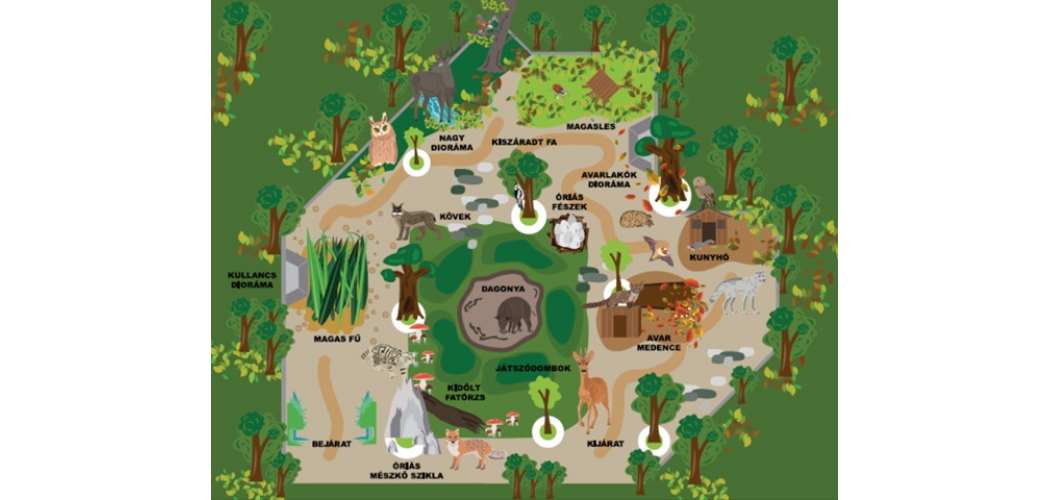A gyermekek interaktív és biztonságos játszóelemek segítségével szerezhetnek tudást az erdő élőlényeiről és környezetükről. A kiállítás a Nemzeti Alaptantervhez csatlakozva segíti az iskolán kívüli oktatást.