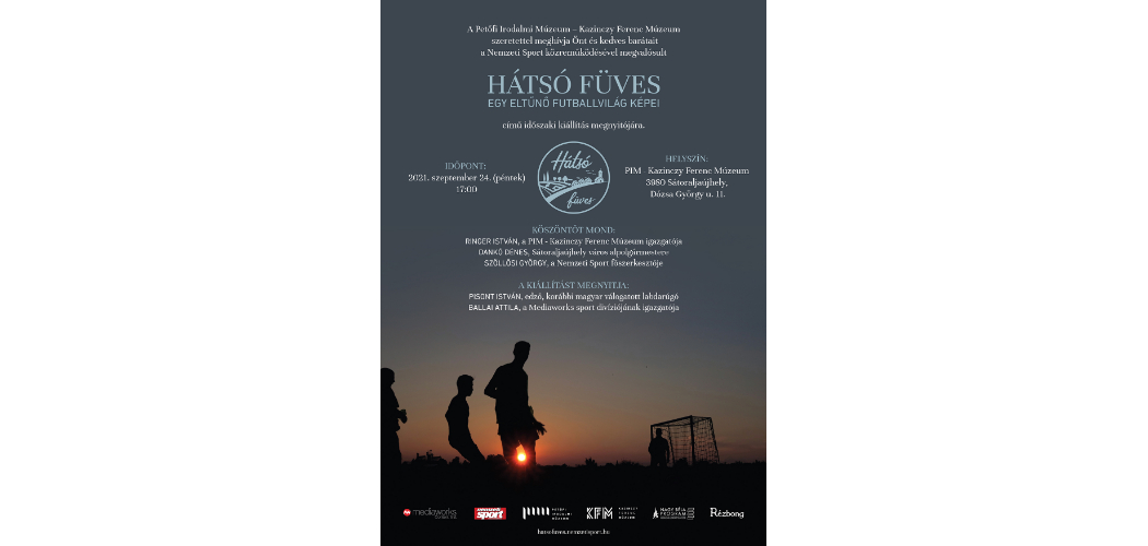 A Hátsó füves kiállítás Csillag Péter újságíró és a résztvevő fotóriporterek Nemzeti Sportban megjelent, öt évet felölelő, többszörösen díjazott, utóbb önálló könyvben is bemutatott országjáró sorozatának vizuális és tárgyi összegzése. A közel százötven helyszínt érintő gyűjtés képi hozadéka az egyedülálló válogatás a tíz alkotó lenyűgöző, mégis emberközeli fotóiból, amelyek a falusi labdarúgás kiveszőben lévő, gyökeresen átalakuló világának talán utolsó pillanatfelvételei. A rögzített mozzanatok túlmutatnak a sport keretein, éles korrajzot és szociológiai látleletet kínálnak.