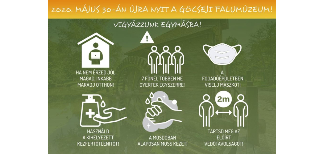 Újranyitásra készül a zalaegerszegi Göcseji Falumúzeum. 2020. május 30-tól az ilyenkor megszokott nyári nyitvatartás szerint fogadja a vendégeket a skanzen, keddtől vasárnapig 10.00-18.00 óra között. Rendezvényeket biztosan nem tartanak augusztus közepéig, emellett a járványhelyzet miatt vannak olyan óvintézkedések, amely szabályait kérik betartani.