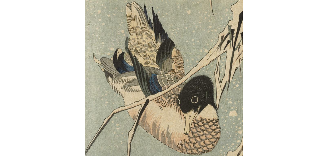 Utagawa Hiroshige (1797–1858): Úszó vadkacsa hóesésben