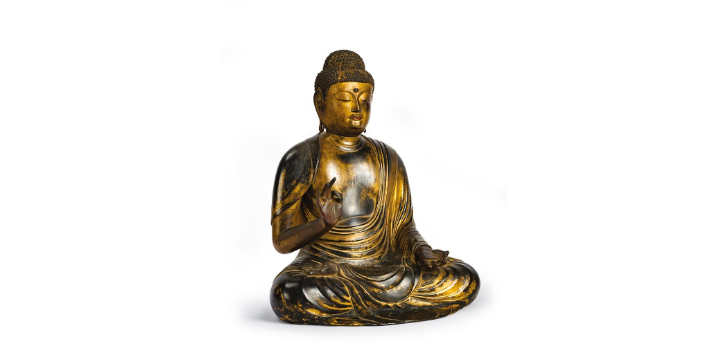 A harmadik terem a buddhista művészetre fókuszál, amelynek gyűjtésére a bemutatott korszak különleges lehetőséget biztosított, ugyanis a sintó államvallássá emelkedésével megjelent a piacon a japán művészet hihetetlenül gazdag és értékes buddhista anyaga. A buddhista festészet és szobrászat alkotásai a japán buddhista hitvilág főbb istenségeit reprezentálják, emellett a szobrászati anyag restaurálásának műhelytitkaiba is betekinthet a látogató.