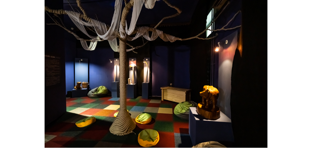 Ebben a térben kértük fel a környék fafaragóit, Bereczky Csaba népi iparművészt és alkotótársait, hogy a népmesék egy-egy jellegzetes elemét készítsék el. Így a látogató, ha jól figyel, felismerheti bennük a meséket.