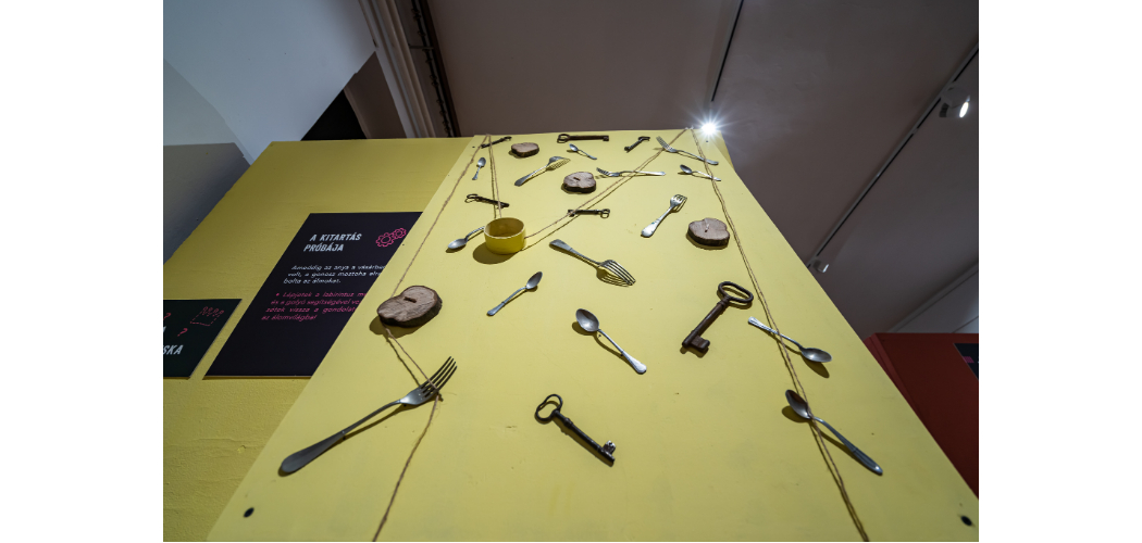 Három termen keresztül tarthat velünk a látogató úgy, hogy képzeletben útra kel ezzel a summás asszonnyal és eljut a mesék birodalmába. Arra törekedtünk, hogy egy interaktív kiállítás keretében történhessen ez, ezért a műtárgyak mellett, számos olyan installáció is látható, amit használhat a látogató.