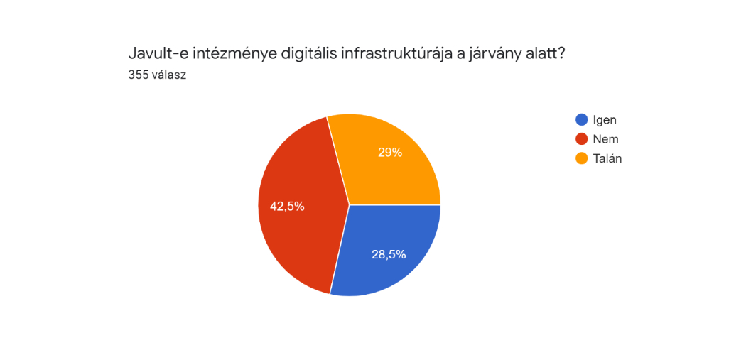 Összességében azonban pozitív, hogy az adatközlők több mint negyede (28,5%) határozottan állítja, intézménye digitális infrastruktúrája javult a járvány alatt.