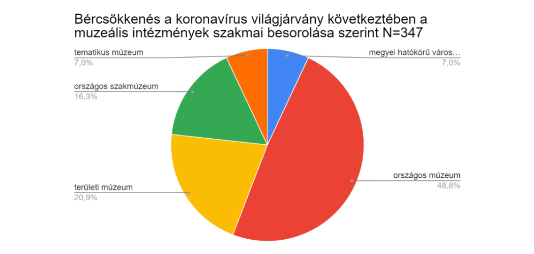 A MOKK januári jelentése szerint a 184 válaszadó intézmény közül három helyen fordult elő, hogy a munkatársakat fizetés nélküli szabadságra küldték, 45 helyen történt szabadságolás (fizetett szabadság), bércsökkenésre 17 helyen került sor, a többi helyen nem történt semmilyen, humánerőforrást érintő változás. Az általam végzett, a múzeumi munkatársakra irányuló kutatás szerint bércsökkenést csak a válaszadók 12,4 százaléka tapasztalt, főleg az országos és a területi múzeumokban.