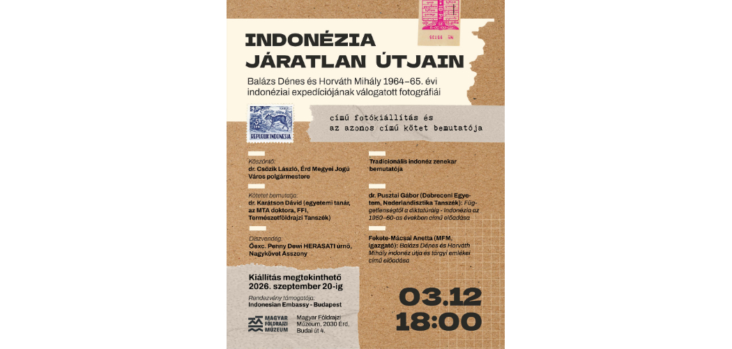 A Magyar Földrajzi Múzeum alapítója, dr. Balázs Dénes munkásságának tiszteletére egy fotókönyv sorozatot indított el MFM Fotótár címmel. A kötet első része Balázs Dénes 1964 és 1965 közötti, Horváth Mihállyal közös indonéziai utazása során készült felvételeiből tartalmaz egy válogatást.