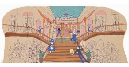 F. A.: Mikor a közös munka elkezdődött, még nem volt egészen kész a mese, így ez egy egészen egyedi, közös alkotó folyamat volt. A fő karakterek készen álltak a szereplésre és a mese fő vonala is megvolt, de a pontos szöveg és ív sokat alakult a munka alatt. Fontos szempont volt, hogy szerethetőek legyenek a karakterek (ugyanakkor kicsit viccesek maradjanak) és, hogy felismerhetőek legyenek a helyszínek, bizonyos, a múzeum gyűjteményeiben fellelhető képek és tárgyak. A karaktereket együtt választottuk ki sok vázlatból. A helyszíneket bejártuk, fotóztam és kaptam sok archív felvételt is.