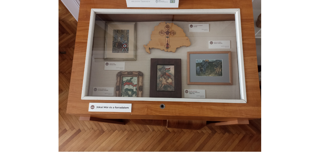 Négy tárló fogadja a látogatókat: Jókai Mór, Jókai Mór művei – két csoportosításban–, valamint Jókai és a forradalom címmel. Sokak felkaphatják a fejüket a hír hallatán, és joggal merül fel a kérdés, hogy mit keres ezen a helyszínen Jókai Mórról egy kiállítás?