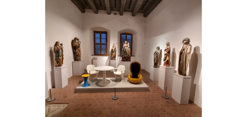 A világűr téma a Szovjetunió űrversenyben aratott sikereivel, az első műholddal (Szputnyik 1959) és Gagarin űrrepülésével (1961) meghatározta az egész 60-as éveket. A kiállítás további darabjai, mint például egy Gagarin-mellszobor (mely az egykori kolostor épületében úgy hat, mint egy szerzetes) könyvek és filmek, az 1960-as évek „kozmikus korszakát” idézik fel.