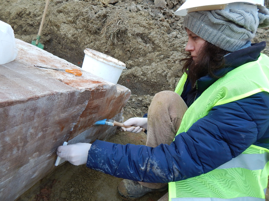 A csaknem három évvel ezelőtti feltárás óta ideiglenes állagmegóvást végeztek a munkatársaink: geotextillel letakarták őket, vastag szalmaréteggel borították, hogy ellenálljanak a nedvességnek és a fagynak. Most azonban a kiemelés és az elszállítás komoly fejtörést okozott a múzeum régészeinek és restaurátorainak. Az országban ilyen nagy méretű (18 és 15 négyzetméter alapterületű) téglaégető kemence kiemelésére még nem volt példa. Korábban csupán egyetlen kis méretű Árpád-kori kemencét emeltek ki a lelőhelyéről a Budapesti Történeti Múzeum szakemberei. Már az előzetes felméréskor eldőlt, hogy egy tömegben lehetetlen kiemelni a kemencéket, fel kell őket darabolni és tömbökben elszállítani arra a fedett területre, ahol majd a későbbi restaurálásuk történik. A minél biztosabb egyben maradásukhoz pedig a kerámia-restaurálásnál használt anyagokat hívták segítségül. A kisebbik kemencét sikerült már tizenegy részre szedni, ezután egy vaslap alácsúsztatásával és markoló segítségével dobozba helyezik a tömböket, fóliázzák, a doboz üregeit hungarocellel és purhabbal kitöltik, ezután már csak a raktárba való elszállítás következik.