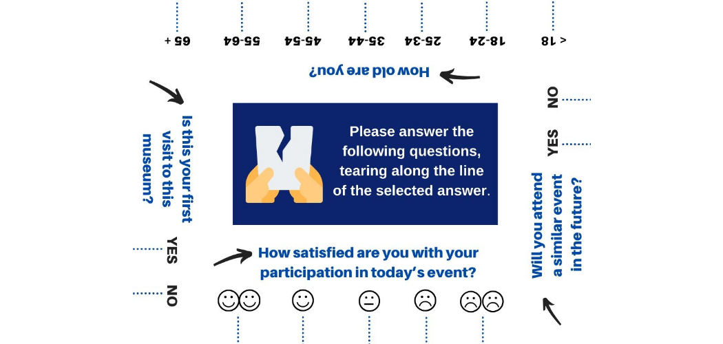 Mivel a Múzeumok Éjszakáján minél több programon szeretnének részt venni a karszalagot megváltó látogatók, ezért a legtöbb esetben nem lesz lehetőségünk sokat kérdezni vagy hosszabb válaszokat kapni. Azért ilyenkor is van lehetőségünk a visszajelzések gyűjtésére. Feltehetünk egy kérdést a rendezvényünkkel vagy a látogatóval kapcsolatosan, ami nekünk valamilyen szempontból a legfontosabb. A válaszadási kedvet növelheti, ha valamilyen kreatív módot választunk a válaszok gyűjtésére. Ilyen lehet például egy véleményfal, ahova a megfelelő részhez felragaszthatunk egy pöttyöt vagy a szavazóüvegek is (szavazni szinte bármivel lehet: kővel, gesztenyével, ping-pong labdával, dominóval, parafadugóval stb. annak megfelelően, hogy mi illik az intézményhez).