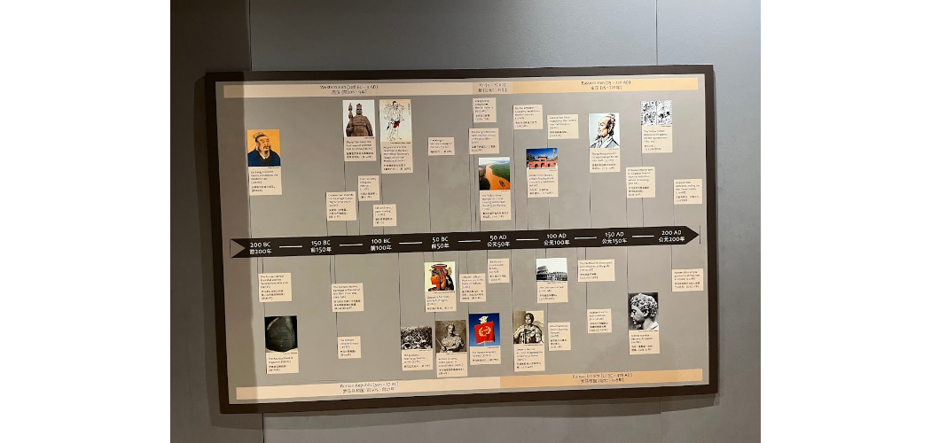 A második szintre ereszkedve a Han-dinasztia – örök élet (Han Dynasty: Life Everlasting) megnevezésű kiállítási egység tekinthető meg. A római birodalomhoz hasonlítva emelik ki a kurátorok a Kr. e. 206 és Kr. u. 220 között tartó kínai korszak jelentőségét. A jól ismert agyag katona fogadja a látogatókat, de sajnos nem eredeti. Ezen a szinten több másolattal találkozik a látogató, viszont rengeteg eredeti tárgyat is és igazi különlegességeket is meg lehet ismerni. Azok, akik a kristályok iránt érdeklődnek, avagy a jáde iránt vonzódnak, nagy élvezettel tekinthetik meg az ezekből készült használati tárgyakat. Külön érdekesség az a grandiózus temetési, ember alakú koporsó, mely jádéből készült. A kiállítás ezen a szinten is kimondottan jól operál az infografikákkal, és különböző ábrákkal segíti az értelmezési folyamatot. Európai szemmel kimondottan izgalmasnak mondható a római és a kínai birodalom párhuzamos idővonalon való összehasonlítása. Az egyes kiemelkedő uralkodók és a közismert Konfuciusz bemutatására is sor kerül ezen a szinten.