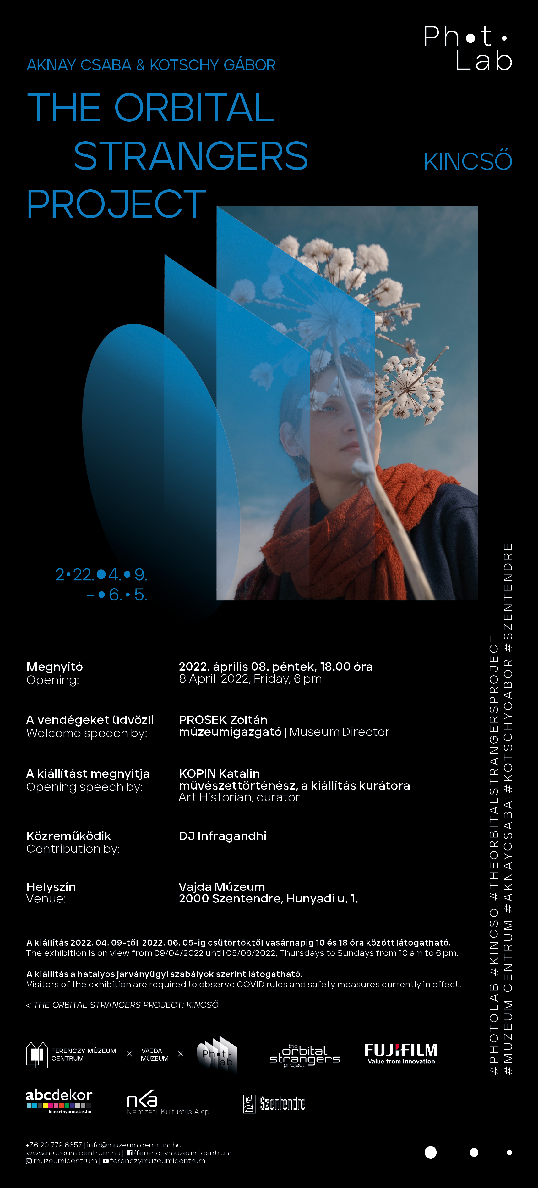 Szentendre idén nyílt fotóművészeti kiállítótere, a PhotoLab áprilistól az Orbital Strangers Project kiállítását mutatja be. Aknay Csaba és Kotschy Gábor fotográfusok új projektje az erdélyi színésznő, Blénesi Kincső – az Eltörölni Frankot című film női főszereplője – egzisztencialista portrésorozatán keresztül ábrázolja az otthon és az önfelfedezés kérdéseit Gyergyó és Budapest között.