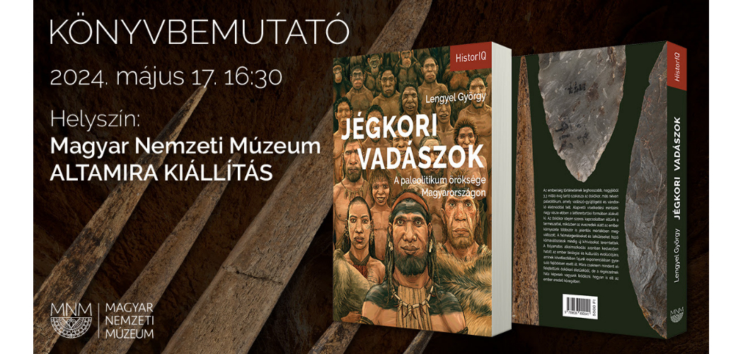 Május 17-én, délután fél 5-től az Altamira-kiállításban kerül sor a Magyar Nemzeti Múzeum új, ismeretterjesztő sorozatának első kiadványának bemutatására. A HistorIQ címet viselő sorozat célja a tudomány népszerűsítése, ami gazdagon illusztrált kötetekben kívánja bemutatni Magyarország kiemelkedő régészeti emlékeit a múltunk iránt érdeklődő nagyközönségnek. A sorozatban feldolgozásra váró témák között helyet kapnak a régészeti korszakai, a Kárpát-medence ősi népei és kultúrái. Az első kötet az őskőkor magyarországi vonatkozásait tárja az olvasó elé. A kötetet bemutatja a szerző: dr. Lengyel György régész és dr. Virágos Gábor, a Nemzeti Régészeti Intézet vezetője.