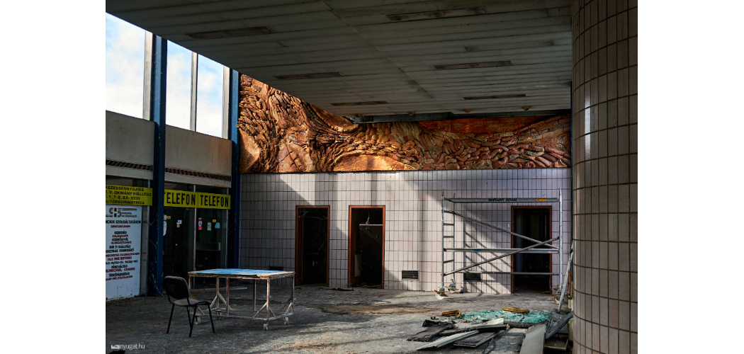 A szombathelyi születésű Kossuth-díjas iparművész, Schrammel Imre nagy méretű, falra készített kerámia domborművét mentik éppen. Schrammel műveiből kettő is található a bontásra ítélt határátkelő épületében, de összesen négy alkotást sikerül megtartani az utókornak, hiszen a Kecskeméti Sándor-Kovács Gyula párostól is rendelt az állam annak idején kettőt az épületbe. 1984-ben kerültek a falakra.