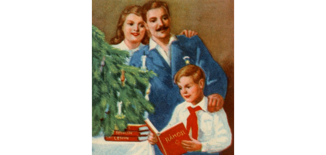 Úttörő Rákosi könyvvel - Még a karácsonyi üdvözlőlapról sem hiányozhatott a propaganda