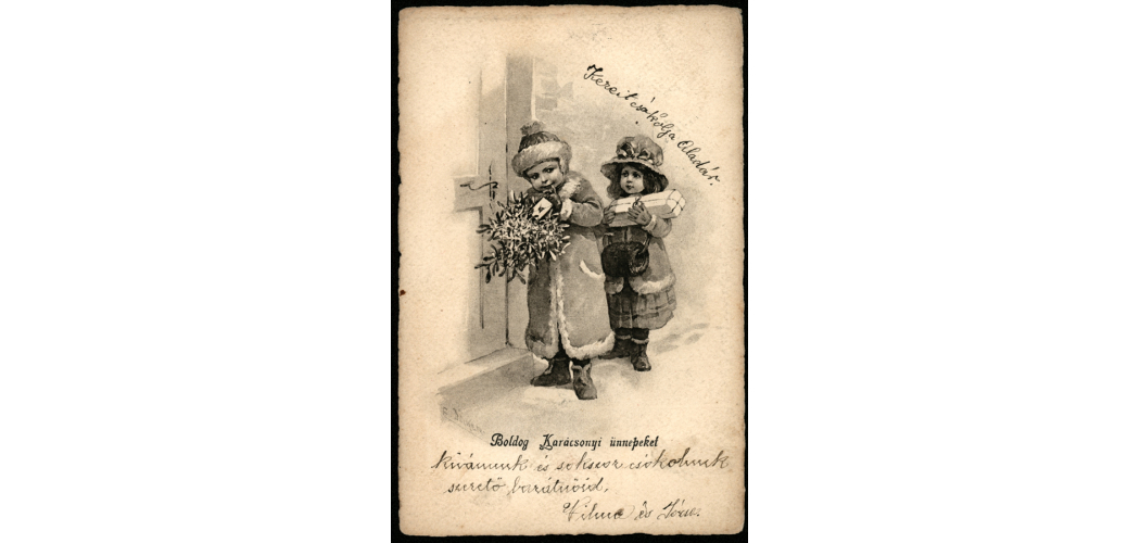 De megtudtunk más érdekességet is. Az 1800-as évek második felében a nyílt postai levelezőlap képes felére írták a szöveget hazánkban, de ennek is megvan a magyarázata. A kétkrajcáros Magyar Királyi Posta levelezőlapja egyik felén csak a címzésnek hagytak felületet, így helyhiány miatt az üdvözlőszöveget kénytelenek voltak elődeink a grafikai oldalra írni. 1905-ben aztán jött a fordulat: a lap osztott lett, így a karácsonyi üdvözlőlap képes felére már nem volt szükség írni. Nagyszerűen elfért a címzés és a szöveg ugyanarra az oldalra.