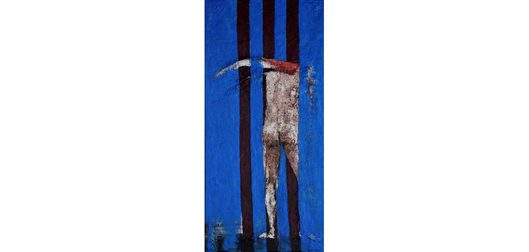 Baksai József: Törött szárnyak, 2021, olaj, vászon, 209×100 cm