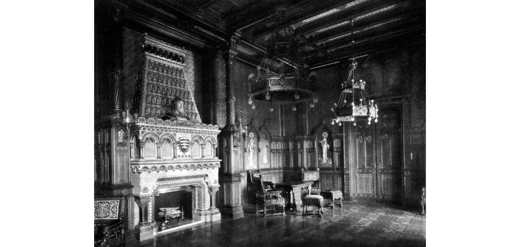 A Szent István-terem falait Árpád-házi királyokat és szenteket ábrázoló Zsolnay-pirogránit képek díszítették. A helyiség kandallóját tűzálló, mázas kerámiával burkolták, amelyre Strobl Alajos Szent Istvánról készült mellszobra került. A 220 centiméter széles és 465 centiméter magas kandallót a pécsi Zsolnay Porcelánmanufaktúrában több mint egy év alatt reprodukálták eredeti méretében, színében és anyagában.