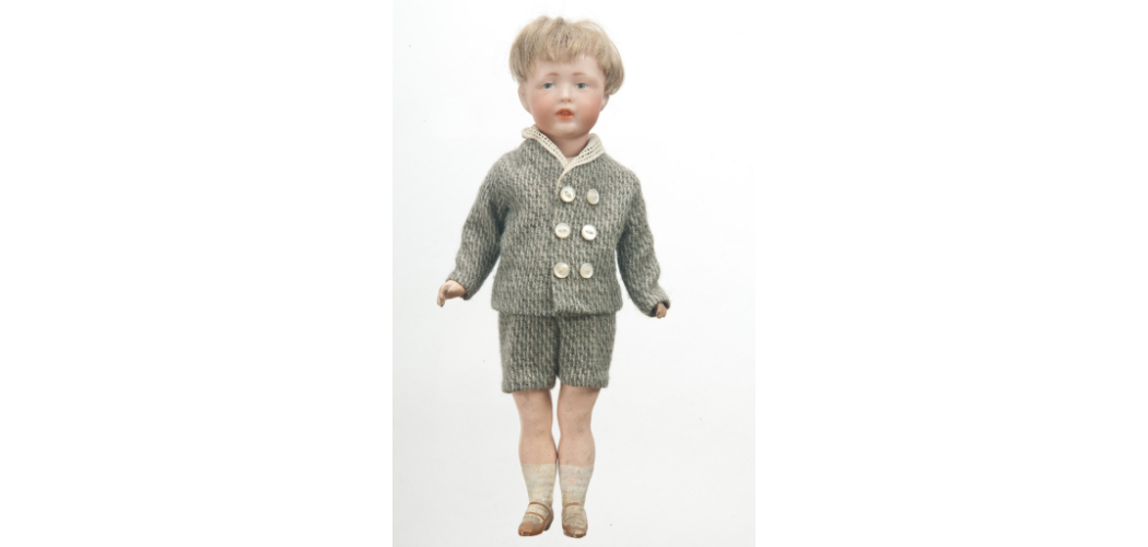 Biszkvitporcelán fejű karakterbabák („Marie” és „Walter”). 1909. Kämmer & Reinhardt Babagyár, Waltershausen (Türingia, Németország). Hetedhét Játékmúzeum, Moskovszky-gyűjtemény. (Fotó: Kiss László)