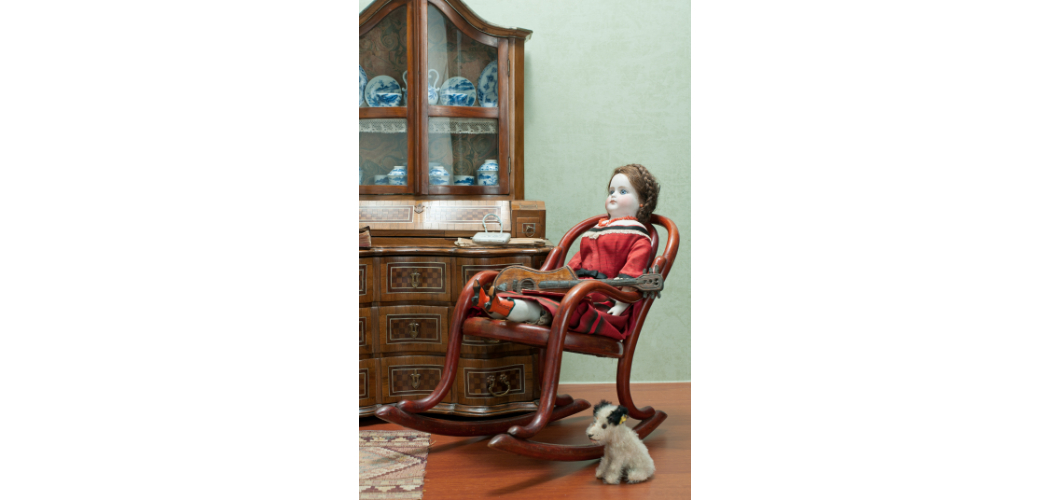 Babaszoba berendezése biszkvitporcelán fejű karakterbabával. Hetedhét Játékmúzeum, Moskovszky-gyűjtemény. (Fotó: Kiss László)