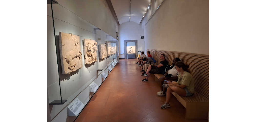 Az Uffiziben lépten-nyomon padok várják a megfáradt vendégeket