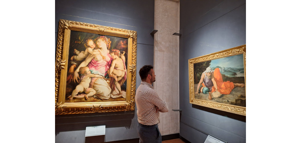 Élménydús utunk a második emeleten kezdődött, ahol a már jól ismert félig üvegezett és díszített Vasari-folyosóra jutottunk. Amerre a szem ellátott, mindenhol szobrok, festmények, mennyezeti képek, fastukkók. A táblák informatívak és jól láthatók voltak, azonnal tudtuk, hol vár minket Giotto, Botticelli, Tiziano, Leonardo da Vinci, Michelangelo vagy FilippoLippi. Örömmel vettük, hogy a múzeum egész területén nagyon sok pad és ülőalkalmatosság várja a megfáradt látogatót, hiszen egy közel 13 ezer négyzetméteres kiállítótérben nagyon fárasztó lenne folyton talpon lenni, még akkor is, ha mindannyian tudjuk, a nagy múzeumokban az a titok, hogy ki kell választani, melyek azok az alkotások, amelyeket feltétlenül látni akarunk.