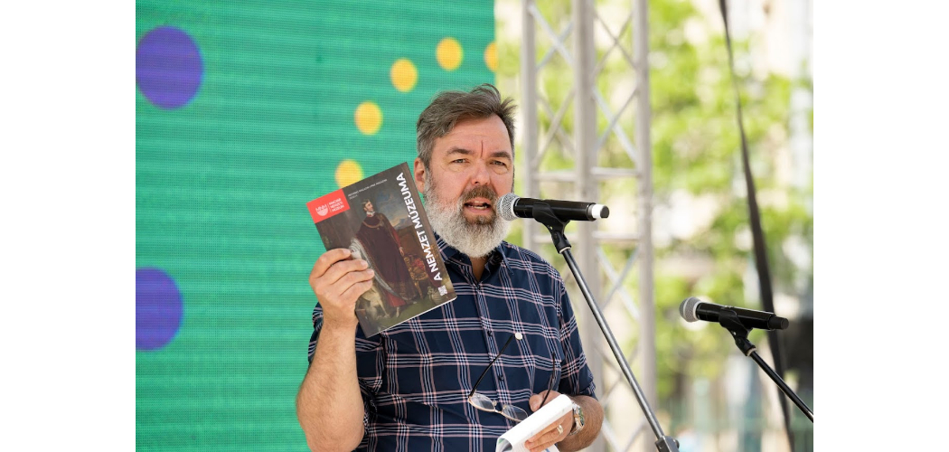 L. Simon László kezében a negyedévente megjelenő Nemzet Múzeuma című ingyenes magazin első számával