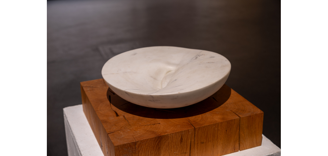 Nyári Zsolt szobrászművész - Örvény (2008, márvány, tölgyfa)