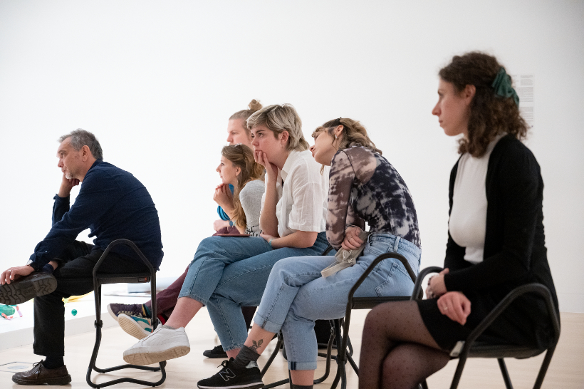 A szemlélődés után egy csoportos feladat keretében a résztvevők - szintén háztartási eszközökből - a látottakhoz hasonló szobrokat kreáltak, amiket a beszélgetés időtartamára el is helyeztek a múzeumi térbe.