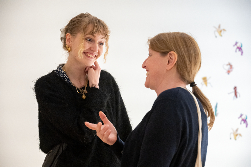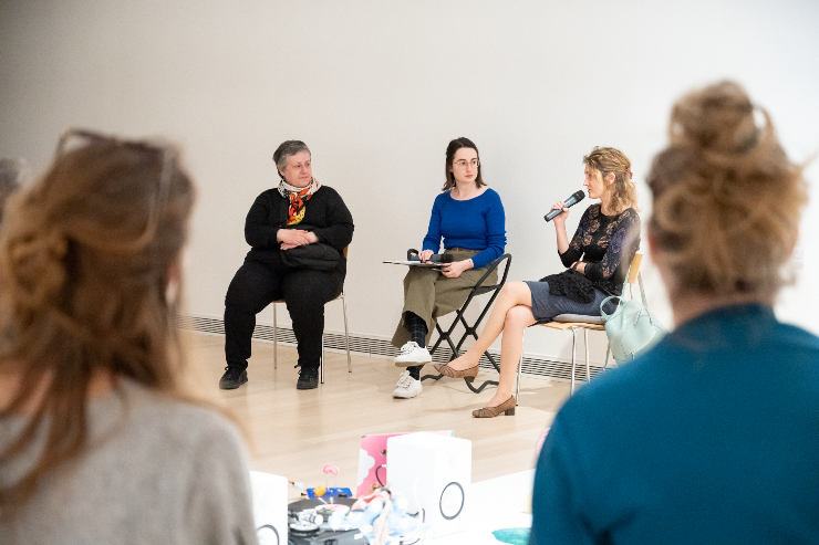Juhász Ágnes megosztotta első benyomásait és élményeit a kiállítás darabjaival kapcsolatban. Szóba került a mosogatás, mint negatív konnotációt hordozó fogalom, a vidám káosz jelenléte az otthonunkba. A házimunkában a férfi és női szerepek megjelenése is, mint benyomás, amit a tárgyak váltottak ki.