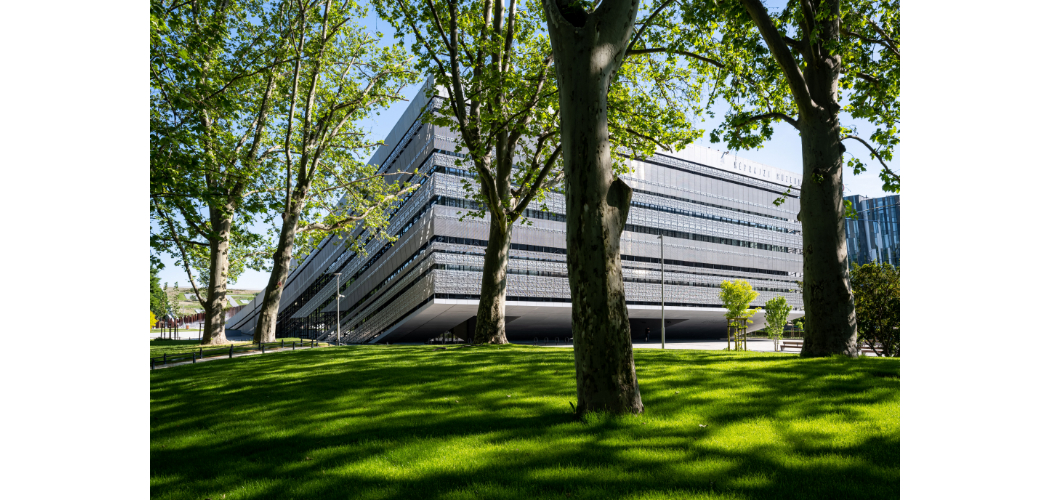 Ez a különleges megoldás nem csak esztétikailag egyedi és formabontó, hanem műszakilag is fontos eleme a homlokzatnak, hiszen az épület árnyékolását is biztosítja, hozzájárulva az energiatakarékos működéshez.