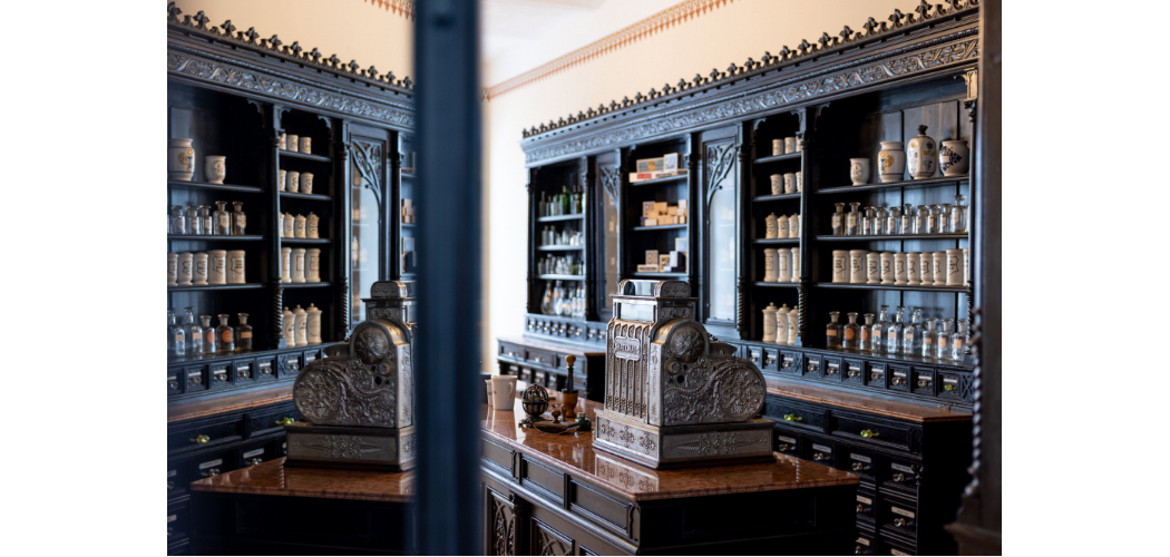 Gyógyszertár a Szentendrei Szabadtéri Néprajzi Múzeumban májusban megnyíló Erdély épületegyüttes első kiállítási egységében; forrás: MTI/Mohai Balázs