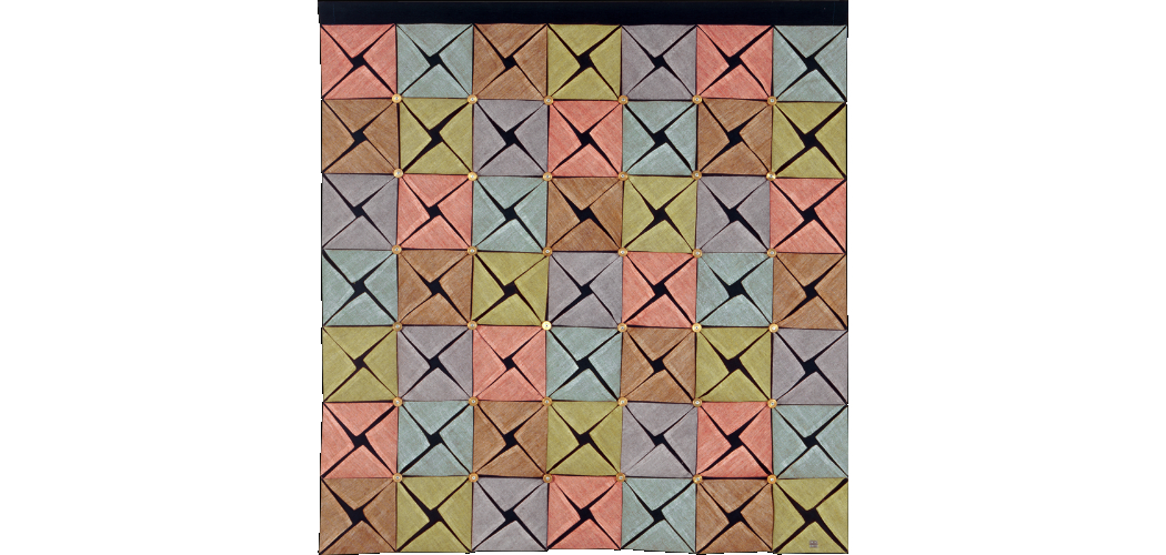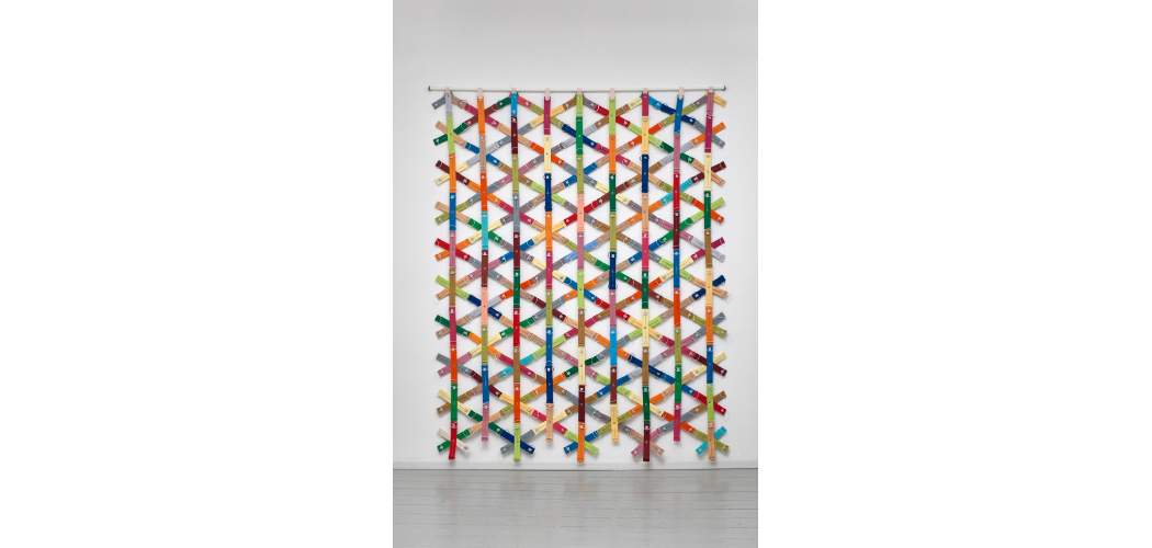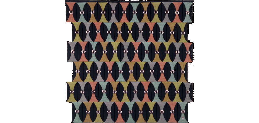Időrendben a legfrissebb alkotás, ugyanakkor a látogató elsőként a Védőháló című tértextillel találkozik a kiállításon.