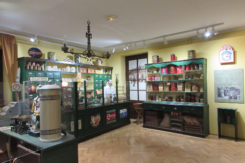 A bútoregyüttes a kereskedelemtörténeti állandó kiállítás harmadik termében kapott újra méltó helyet, ott ahol eredetileg is a 19. században egy pékműhely, később pedig egy kereskedés működött. Így a 2013-2014. évben megnyitott állandó kiállításunk forgatókönyve szerinti eredeti elképzelés valósult most meg, hiszen egy sokfiókos komplett a „hely szelleméhez” igazodó fűszerboltot állítottunk ki, és ezzel kiegészítettük a kisméretű eredetileg Pilisszántóról begyűjtött, már a kiállításban álló vegyeskereskedésünket. A múzeum fontosnak tartja, hogy az állandó kiállításainkat időnként megújítsuk, átalakítsuk és a nagyközönség számára különleges értékkel bíró egyedi tárgyakkal kiegészítsük. A bútort felújított, restaurált állapotban kiállítottuk, és a múzeum törzsgyűjteményéhez tartozó árudobozokkal, bolti eszközökkel és kiegészítőkkel, displayekkel reklámanyagokkal feltöltöttük, kiegészítettük.