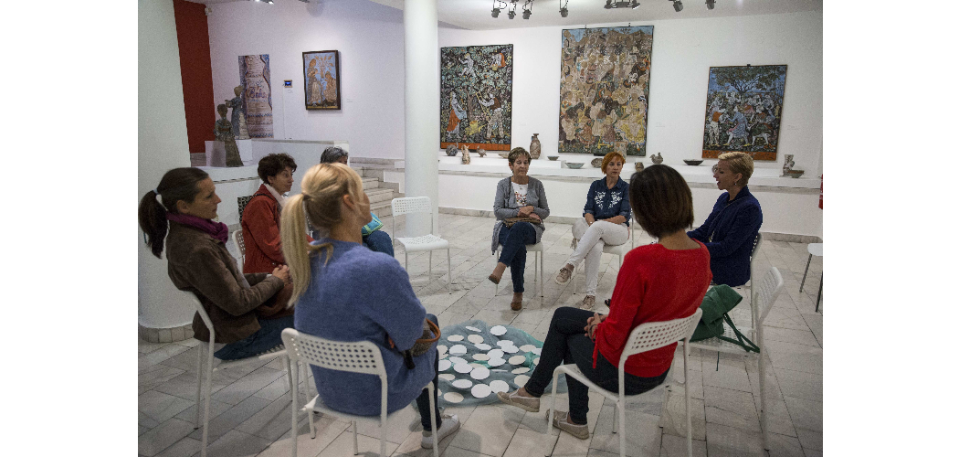 A múzeumi meseterápiás foglalkozáson nemcsak a mese, az önmagunkról való gondolkodás köt össze bennünket a csoport többi tagjával, hanem a műtárgyak és a múzeumi tér is kohéziót teremt.