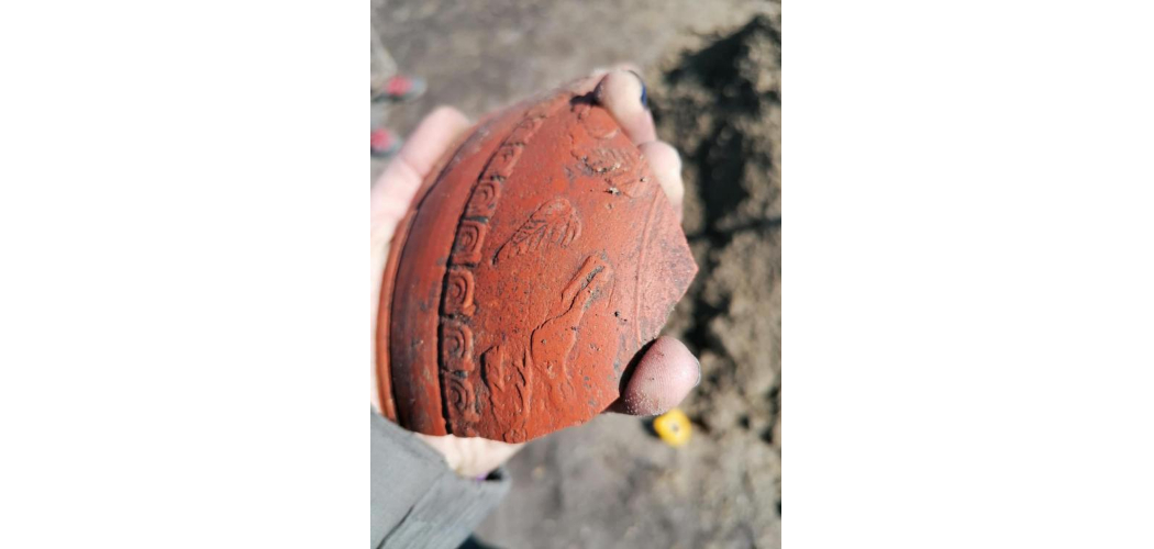 Római díszedény darab (Terra sigillata) vadászjelenettel