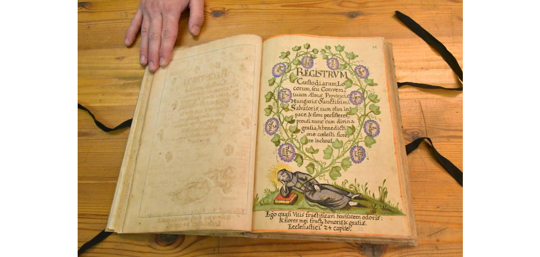 Egyedi és pótolhatatlan dokumentum Agricola Kristóf szépen illusztrált, 1675-ös keltezésű ferences rendtörténeti kézirata is.