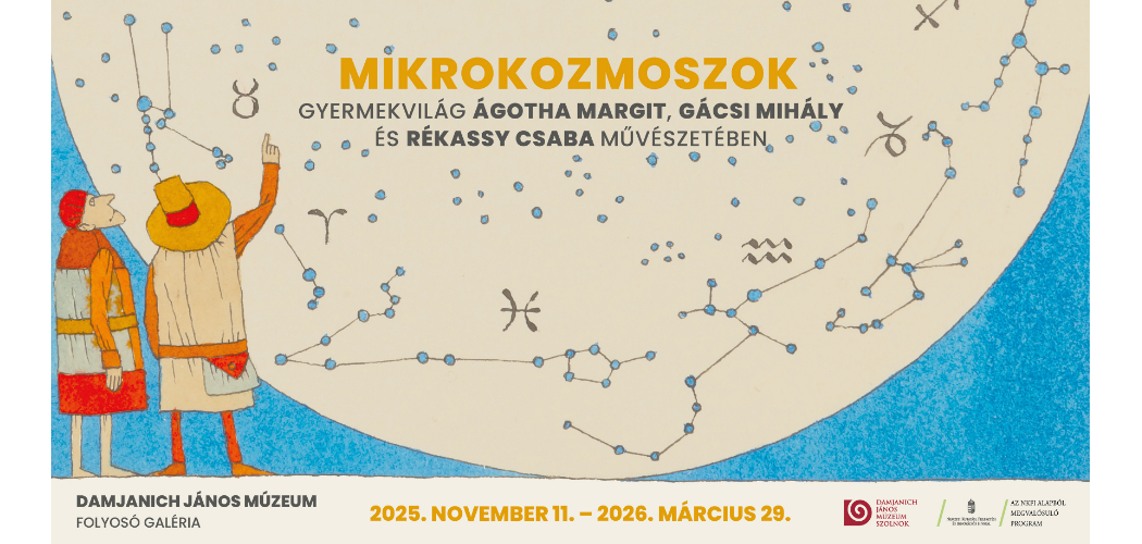 Óriások között botladozó gyermekek, gyerekkönyvek színes lapjai, játékos minták a falon – három szolnoki kötődésű grafikus mutatja meg, hogyan él tovább a gyermekkor varázsa a grafika világában: november 11-én megnyílt a Damjanich János Múzeum Folyosó Galériájában a MIKROKOZMOSZOK – Gyermekvilág Ágotha Margit, Gácsi Mihály és Rékassy Csaba művészetében című kiállítás.