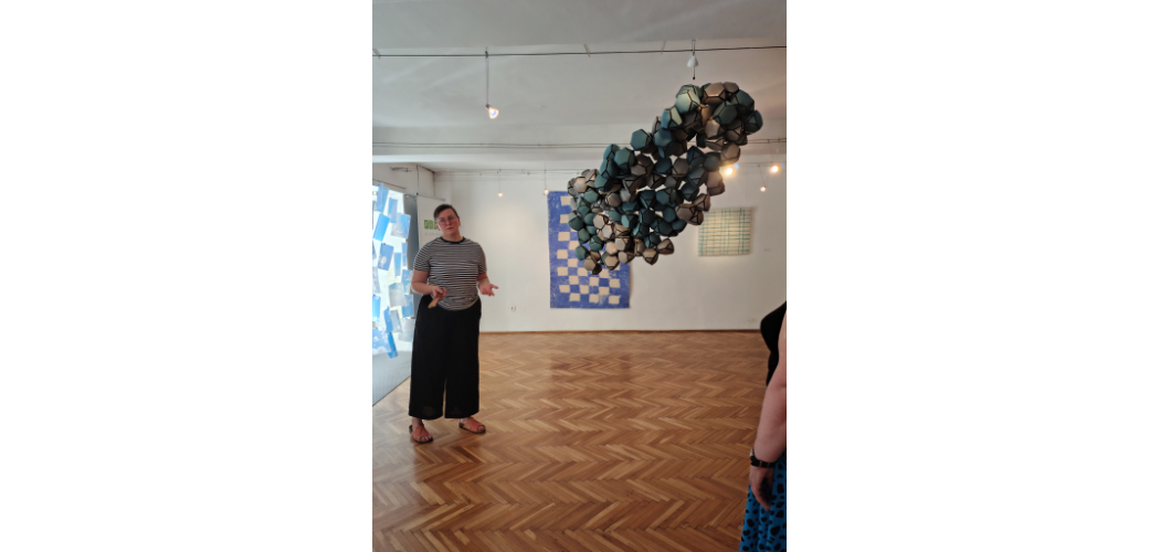 Söptei Eszter textiltervező művész Textiltestek az ég alatt című, záró tárlatvezetéssel egybekötött egyéni kiállításán ezekre a kérdésekre keresett válaszokat, inspirálva egyben a FISE Galéria látogatóit is a kérdésfeltevésre. Mire emlékszik az anyag, amikor felhőt idéz? Milyen hangja van a felhőnek, ha textillé válik? Lehet-e emléke az égboltnak a térben, idézheti-e abban a természetet vagy éppen a textília maga épít saját eget?