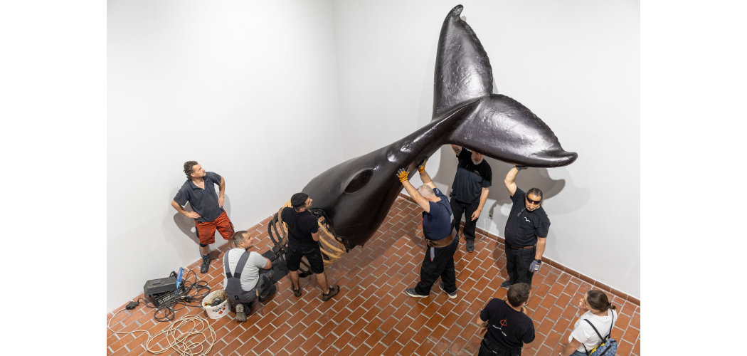 Az Operaház kellékbálnáját installálják a MűvészetMalomban