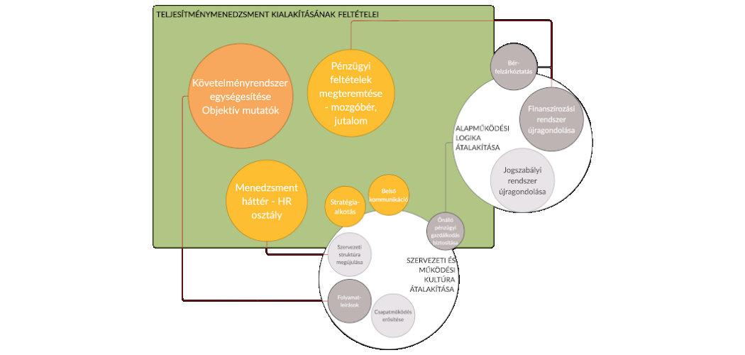 Ha végiggondoljuk, valójában win-win helyzet jön létre, ha a munkatárs jól teljesít: ő is elégedettebb, a szervezet is hatékonyabbá válik. A teljesítménymenedzsment kialakításának azonban számos tényezője, feltétele van. Ezeket az alábbi ábrában gyűjtöttem össze.