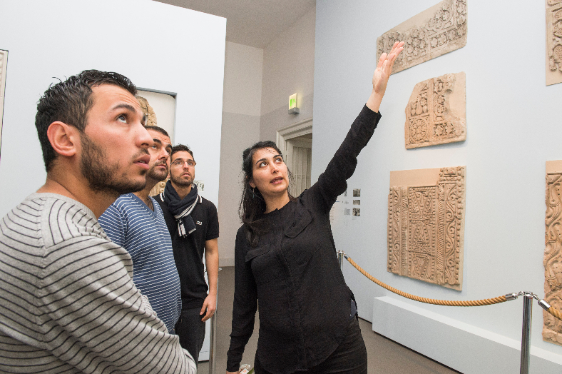 Fotó: Tárlatvezetés a „Multaka: múzeum mint találkozási pont” elnevezésű projekt keretén belül az Előázsiai Múzeumban © Staatliche Museen Berlin, Museum für Islamische Kunst, Milena Schlösser